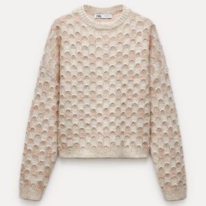 ZARA Alpaca/Wool Blend Scalloped Stitch Pullover Sweater NWOT/sz M