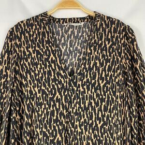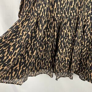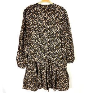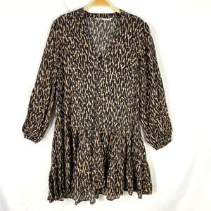 ZARA Animal Print Boho Tiered Dress Size M Brown Black Balloon Sleeve Peasant