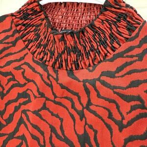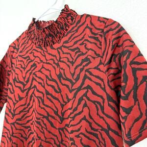 ZARA Animal Print Mini Dress Red Black Short Sleeve Smocked Neck Drop Waist S