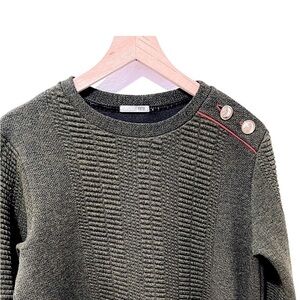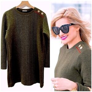Zara quilted sweater military look dress with red piping and two Goldtone buttons