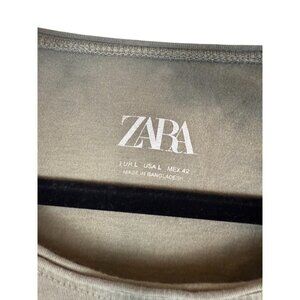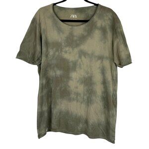ZARA Army Green Tie Dye Short Sleeve Circle Neck Tee Shirt - Large