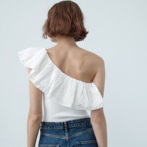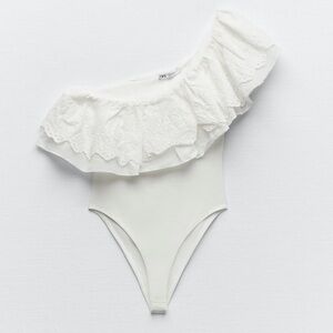 ZARA Asymmetric Ruffle Embroidered Bodysuit