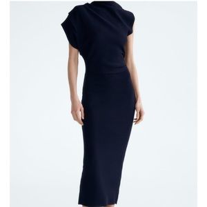 ZARA Asymmetric Sleeve Knit Dress Navy Blue