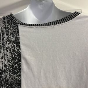 ZARA Asymmetrical Crewneck Short Sleeve Abstract Mix Material Hi/Low Blouse-Med
