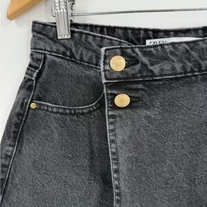 ZARA Asymmetrical Denim Wrap Skort in Black | Size Medium