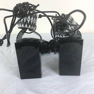 Zara Strappy Tie Up Black White Aztec Print Block Heels.