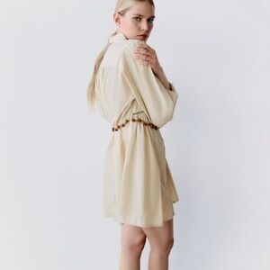 ZARA BABY DOLL EMPIRE WAIST SHIRT DRESS WITH MACRAMÉ BELT NEUTRAL SIZE XL NWT