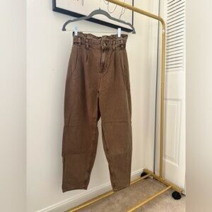 Baggy brown jeans with pockets MID-RISE - BAGGY BALLOON Front zip fly and metal button closure. Size EU34, US 2