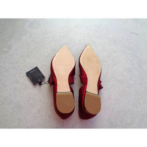 ZARA BALLERINAS GEM RHINESTONE BUCKLE SATIN RED FLATS SHOES. 6