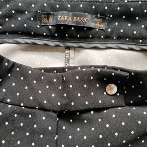 ZARA BASIC BLACK ANKLE PANTS WHITE POLKA DOTS WOMENS SIZE XS CROPPED DRESS WORK