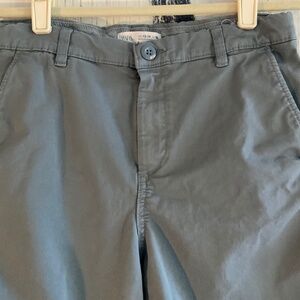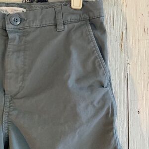 ZARA BASIC CHINO SHORT IN BLUE SKIES SIZE 14. Shorts with adjustable interior drawstring and front button closure. Front pockets and back lable pocket.