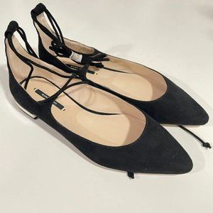 ZARA BASIC COLLECTION LADIES BLACK SUEDE WRAP FLATS W/GLITTER HEEL (NEW!)