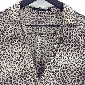ZARA BASIC Leopard Print Blouse has a V cut style with long sleeve which can be rolled up to a shorter sleeve. 2-N-1 style shirt from long to short. This animal print is sure to turn heads and high demand with latest trend in fashion.