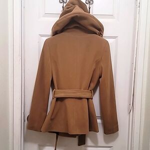 pre owned zara basic hood coat/ jacket in wool with a belt on mid length. in excellent condition