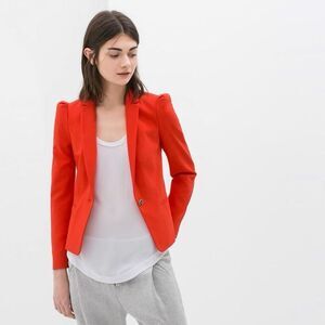 ZARA BASIC Women's Red Blazer XS Single-Button Casual Jacket
