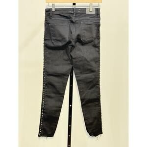 ZARA BASIC Z1975 DENIM JEANS BLACK SIDE METAL RINGS RAW HEM JUNIORS SZ 4