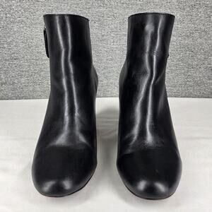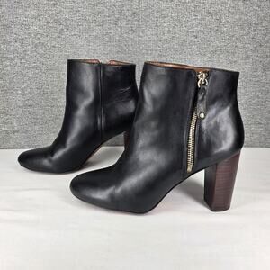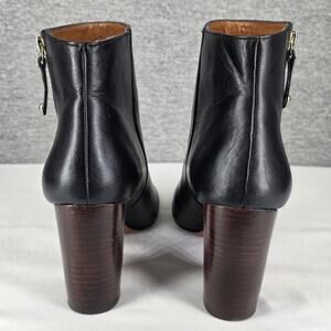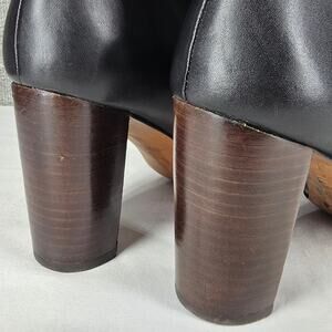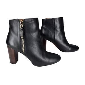 ZARA BASICS WOMEN’S BLACK LEATHER ZIP-UP ANKLE BOOTS — SIZE 9 • 3.5" WOOD HEEL