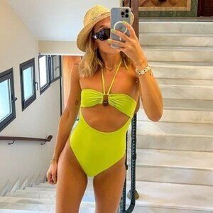 ZARA BEAD BANDEAU SWIMSUIT Small NWT