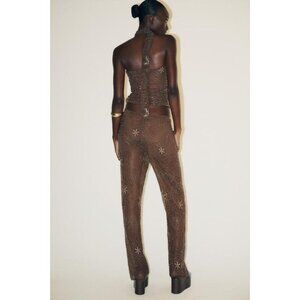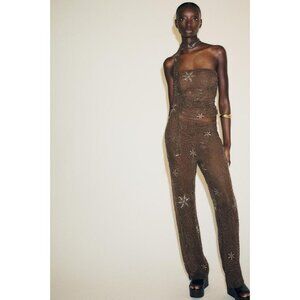 Top with a straight neckline and off-the-shoulder design. Matching foulard. Featuring contrasting bead and sequin appliqué detail.