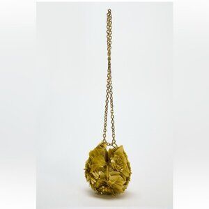 Shoulder bag with beading and flower details. Multi-positional double chain strap. Zip closure.