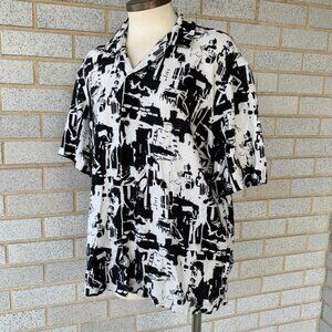 ZARA BLACK AND WHITE MENS BUTTON DOWN SHIRT SHORT SLEEVE SIZE M 80% VISCOSE 20%