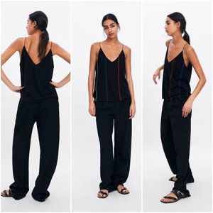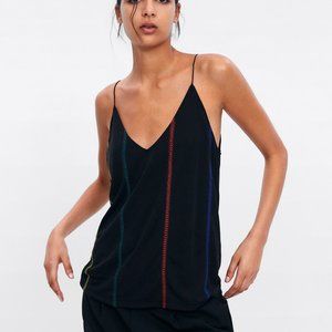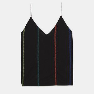 ZARA BLACK MULTICOLOR EMBROIDERED ACCENT SPAGHETTI STRAP CAMI SHIRT $39.90