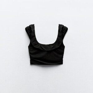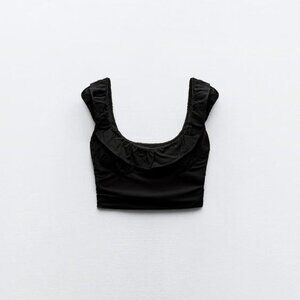 Ruffled tank top, cropped, can also be worn off the shoulder