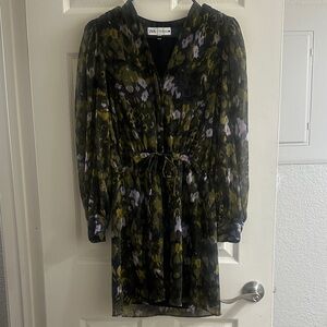 ZARA BLACK SATIN DRESS WITH JEWEL BUTTONS
