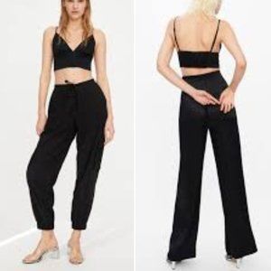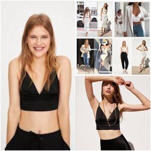 ZARA BLACK SATIN EFFECT LOW VNECK CROP BRALETTE TOP