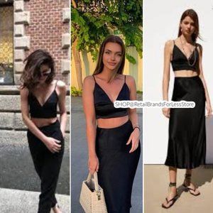 ZARA BLACK SILKY SATIN LOW V NECK ADJUSTABLE STRAPS CROP BRALETTE TOP