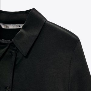ZARA BLACK SHOULDER PAD SATIN EFFECT BUTTON DOWN SHIRT
