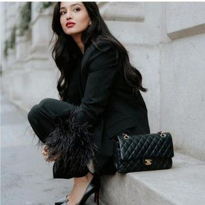 ZARA BLACK STRAIGHT CUT FEATHER BLAZER