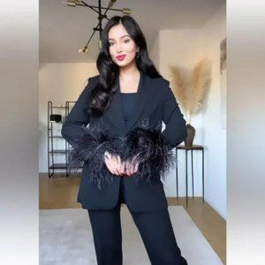 ZARA BLACK STRAIGHT CUT FEATHER BLAZER