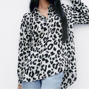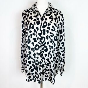ZARA BLACK WHITE ANIMAL PATTERN LONG SLEEVE BLOUSE WOMENS SZ MEDIUM