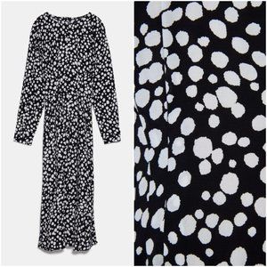 ZARA BLACK & WHITE POLKADOT SPOTTED PRINTED ELASTIC WAIST MIDI DRESS $69.90