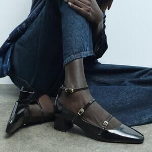 BLOGGER FAVE!!! Black block heel Mary Jane shoes. Faux patent leather finish. Buckled straps. From ZARA, in US size 9 (EUR 40). New with tags.