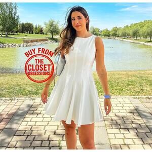 BLOGGER FAVE!!! Oyster white short dress made with a blend of cotton and 12% linen. Round neckline and sleeveless design. Frayed trim with a swing shape. Back metal zip closure. From ZARA, in size M and XL. New with tags. Sold out in stores.