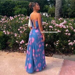 BLOGGER FAVE!!! Multicolored long dress with flowy neckline and spaghetti straps. Open back with adjustable ties. Contrasting interior lining. From ZARA, in size M. New with tags. Sold out in stores. Made in Morocco.