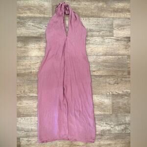 BLOGGER FAVE!!! Lilac midi dress made of 100% linen. Adjustable wrap halter neck with self-ties. Slit hem. Open back. Back hidden in-seam zip closure. From ZARA, in size M. New with tags. Sold out in stores.