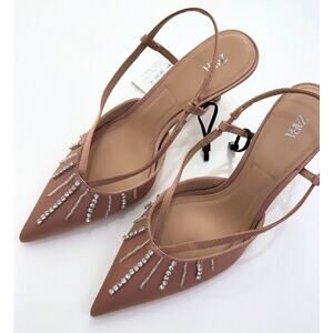 ZARA BLOGGER FAVE!!! Rhinestone Embellished Slingback Heels NWT 🤎