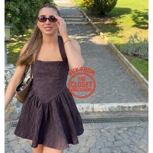 BLOGGER FAVE!!! Chocolate brown short textured dress. Halter neck and straight neckline. Back hidden in-seam zip closure. From ZARA, in size M. New with tags. Sold out in stores.