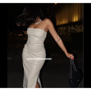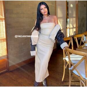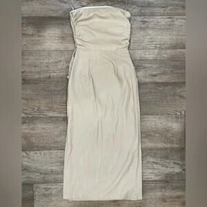 ZARA Blogger Fave Strapless Satin Midi Dress NWT Champagne Beige