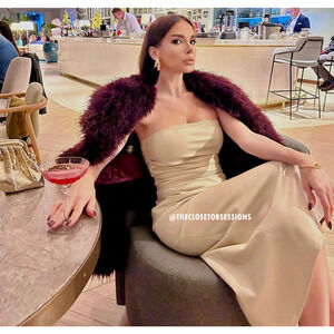 ✨ BLOGGER FAVE! Elegant ZARA strapless satin midi dress, in stunning champagne beige.