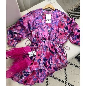 BLOGGER FAVE!!! Multicolored dress with wrap V-neckline. Full cut long sleeves with cuffs. Adjustable elastic waistband with side ties. Flounced hem. From ZARA, in size M. New with tags.