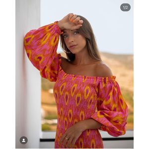 below-the-elbow length balloon sleeves. Smocked