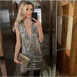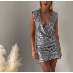 ZARA BLOGGER FAVORITE DRAPED SEQUIN DRESS SILVER