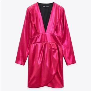 ZARA BLOGGER FAVORITE LAMINATED MINI DRESS FUCHSIA