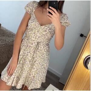 WRAP V-NECK DRESS WITH PUFFY SHORT SLEEVES.
