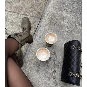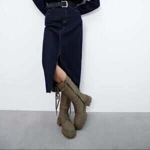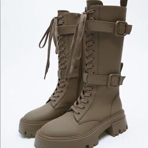 ZARA BLOGGER FAVORITE WAXED FINISH LACED BOOTS 10 army green combat viral TikTok