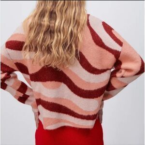ZARA BLOGGER RED PINK RETRO MOD SWIRL JACQUARD KNIT MOCKNECK SWEATER TURTLENECK